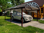 Строение навеса для автомобиля «Армо» выдержит порывы ветра, сильные осадки. Герметичность покрытия обеспечивается за счет листов поликарбоната толщиной 8мм.