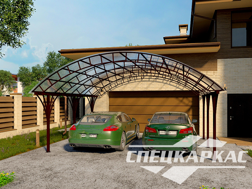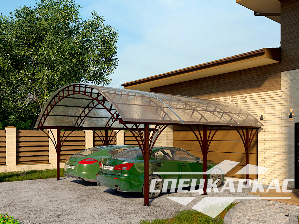 Компания «Спецкаркас» предлагает козырьки, беседки, навесы из поликарбоната любого типа и формата: одно- и двухскатные, прямые и наклонные, арочные и даже куполообразные.