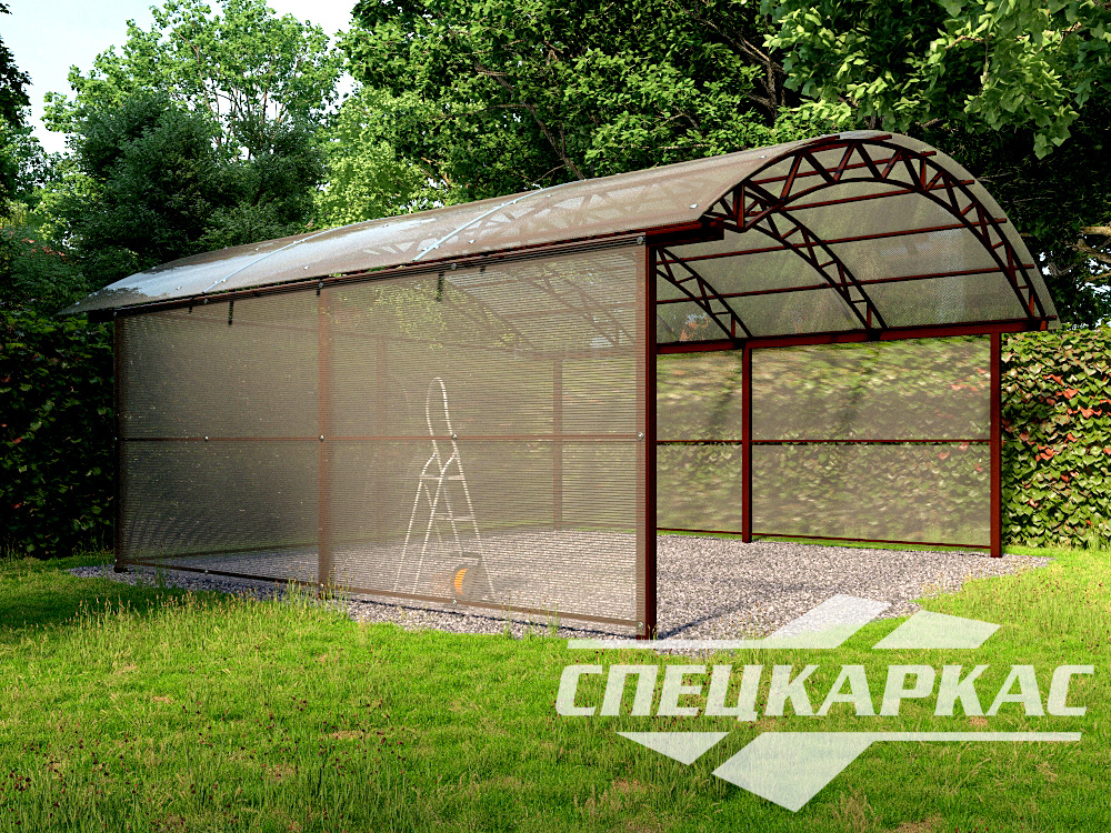 Любители оригинальных необычных решений оценят изысканный дизайн и солидность модели навеса для автомобилей «Вита».