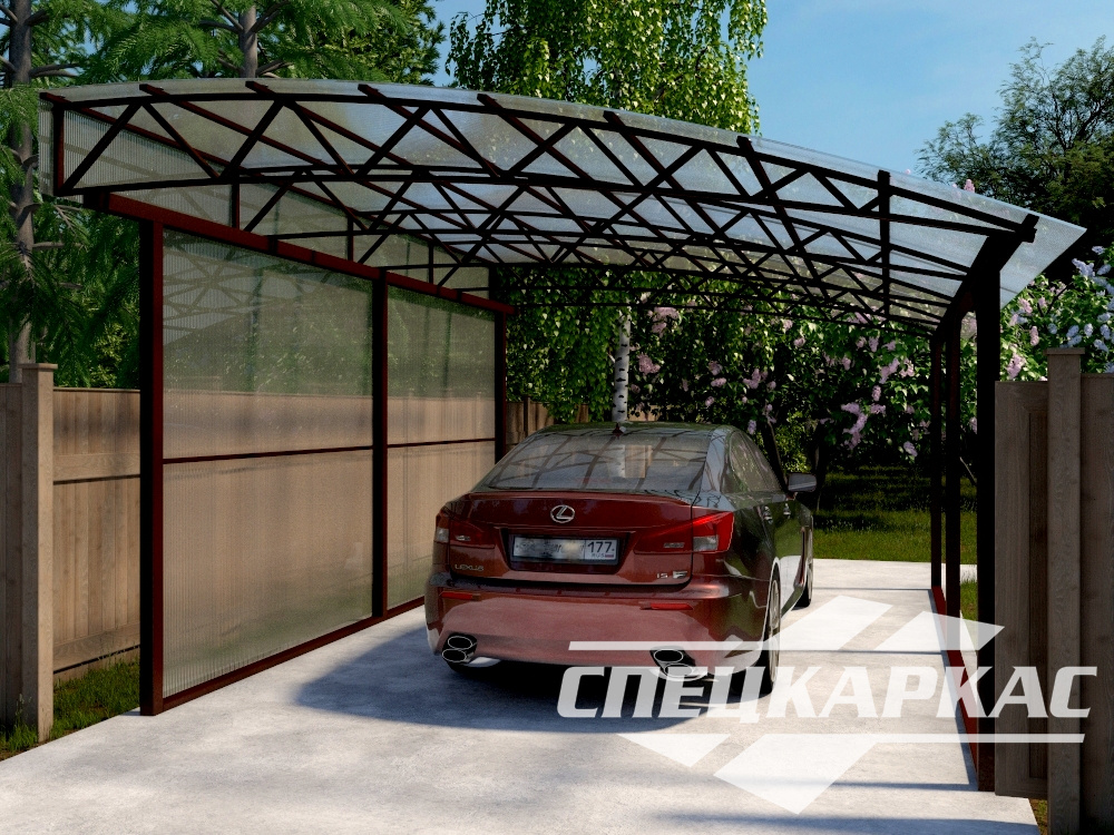 Утолщенные столбы-опоры 80*80 мм, забетонированные на глубине от 1,5м, придают металлоконструкции дополнительную устойчивость, которую не пошатнет даже ураган. Цельносварная стропильная ферма способна выдержать длительную сильную нагрузку, что придает конструкции надежность. Кровля навеса «Грем» выполнена из экологичного и пожаробезопасного поликарбоната. Материал устойчив к воздействиям химикатов, защищает транспорт от воздействия ультрафиолета, выдерживает жару и заморозки без потери эксплуатационных характеристик. Срок службы при правильном уходе – до 20 лет.